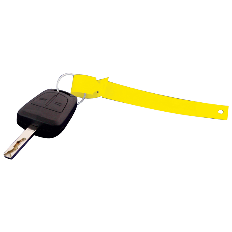 Stevig scheurbestendig papier (teslin) label, welke aan beide zijden te beschrijven is met bv. PM115 of met normale pen.