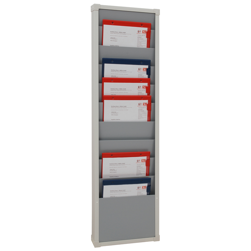 Metalen schappen onder elkaar, planbord is naar wens uit te breiden, ruimte voor 10 stuks A4 werkorderhoezen.
