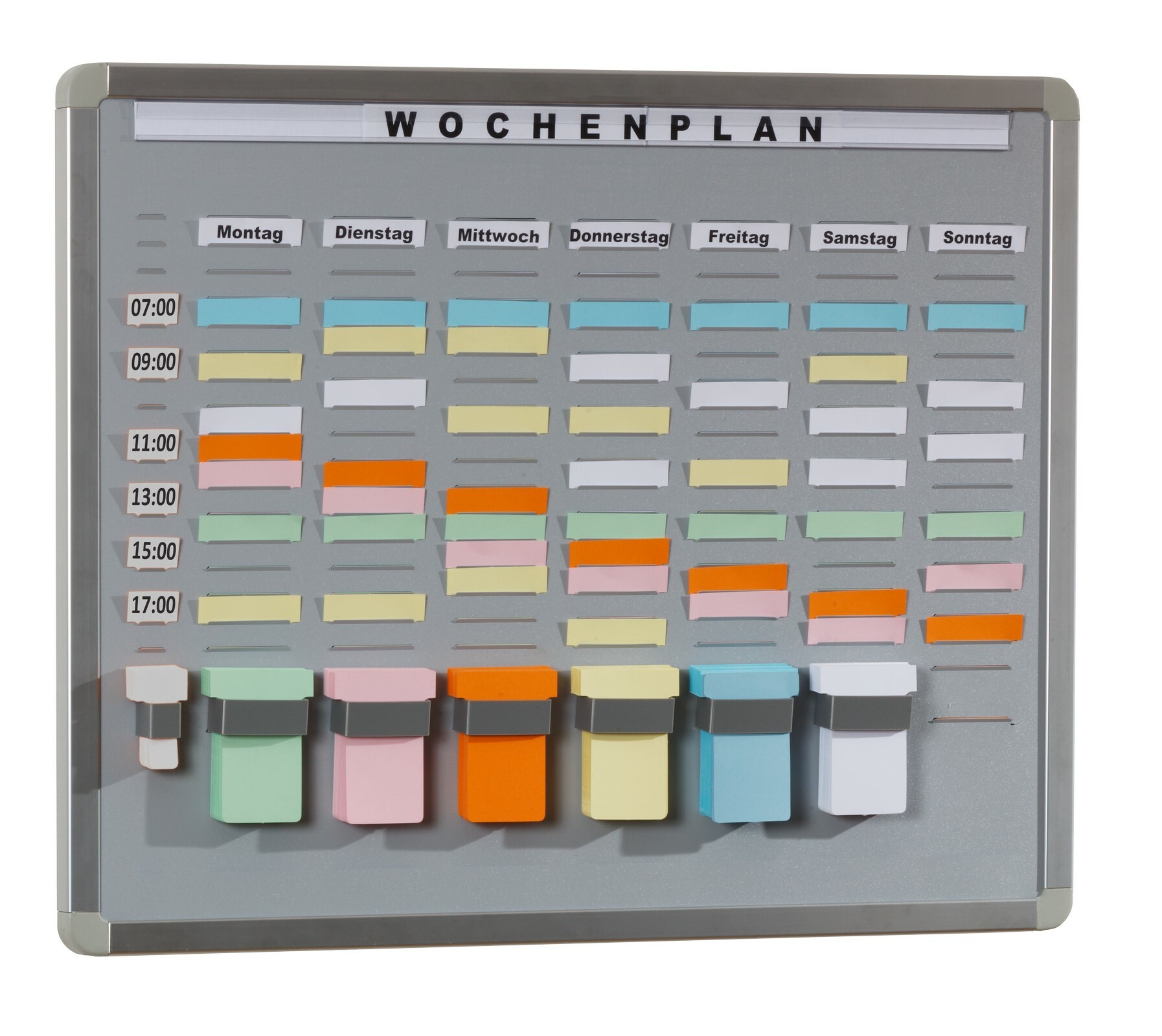 Handig planbord voor uw planning in de werkplaats. Door middel van de diverse kleuren T-plankaartjes (PM119-..) heeft u alles overzichtelijk en helder in beeld.