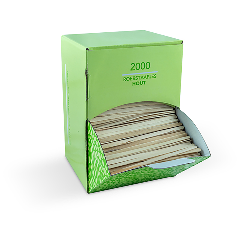 Houten roerstaafjes in dispenser, VPE 2000 st