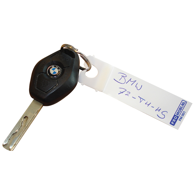Sleutellabel met plastic snelsluiter, schrijfbaar.