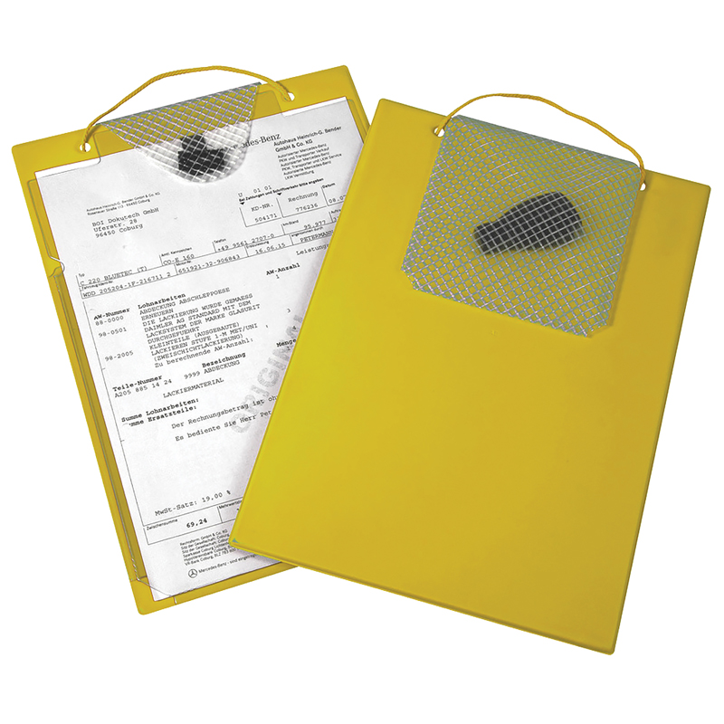 Werkopdrachthoes op A4 formaat met vouw, geschikt voor o.a. serviceboekjes. Met stevig sleutelvak op achterzijde voor sleutels.