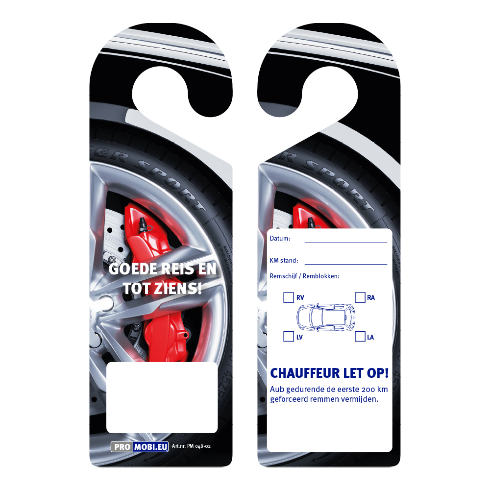 Handige spiegelhanger om de klanten te informeren over de werkzaamheden/service aan het voertuig.