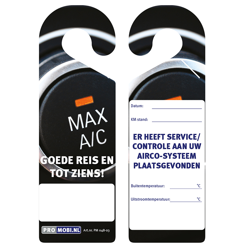Handige spiegelhanger om de klanten te informeren over de werkzaamheden/service aan het voertuig.