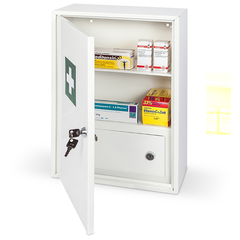 Afsluitbaar EHBO kastje, afsluitbaar en voorzien van 1 legger (PM099-01) of 2 leggers (PM099-02).