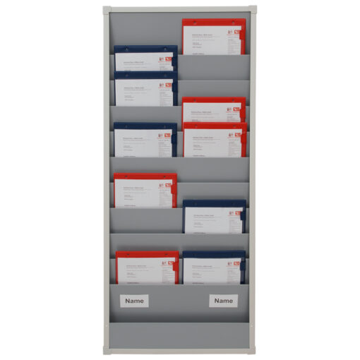 Metalen schappen onder elkaar, planbord is naar wens uit te breiden, ruimte voor ca. 20 A4 werkorderhoezen.